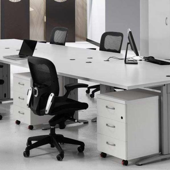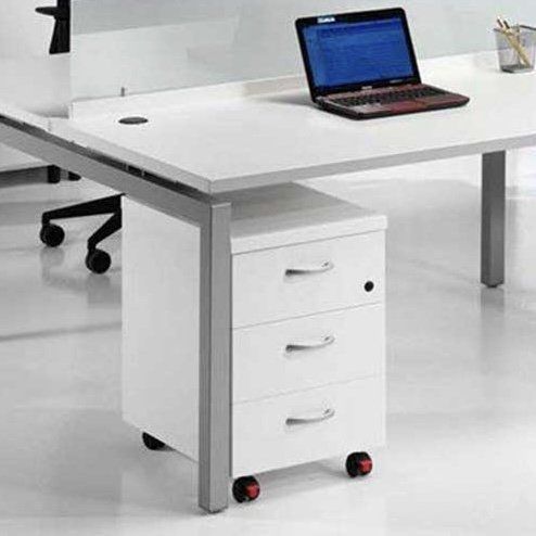 Cajonera operativa rodante de EUROMOF, nuestra cajonera oficina CARES. Fabricada en madera melaminada, con encimera de 30 mm, base de 19 mm y trasera de 10 mm. Tiradores de serie PVC gris y cerradura de bloqueo en cajones y/o archivo. Color a elegir.