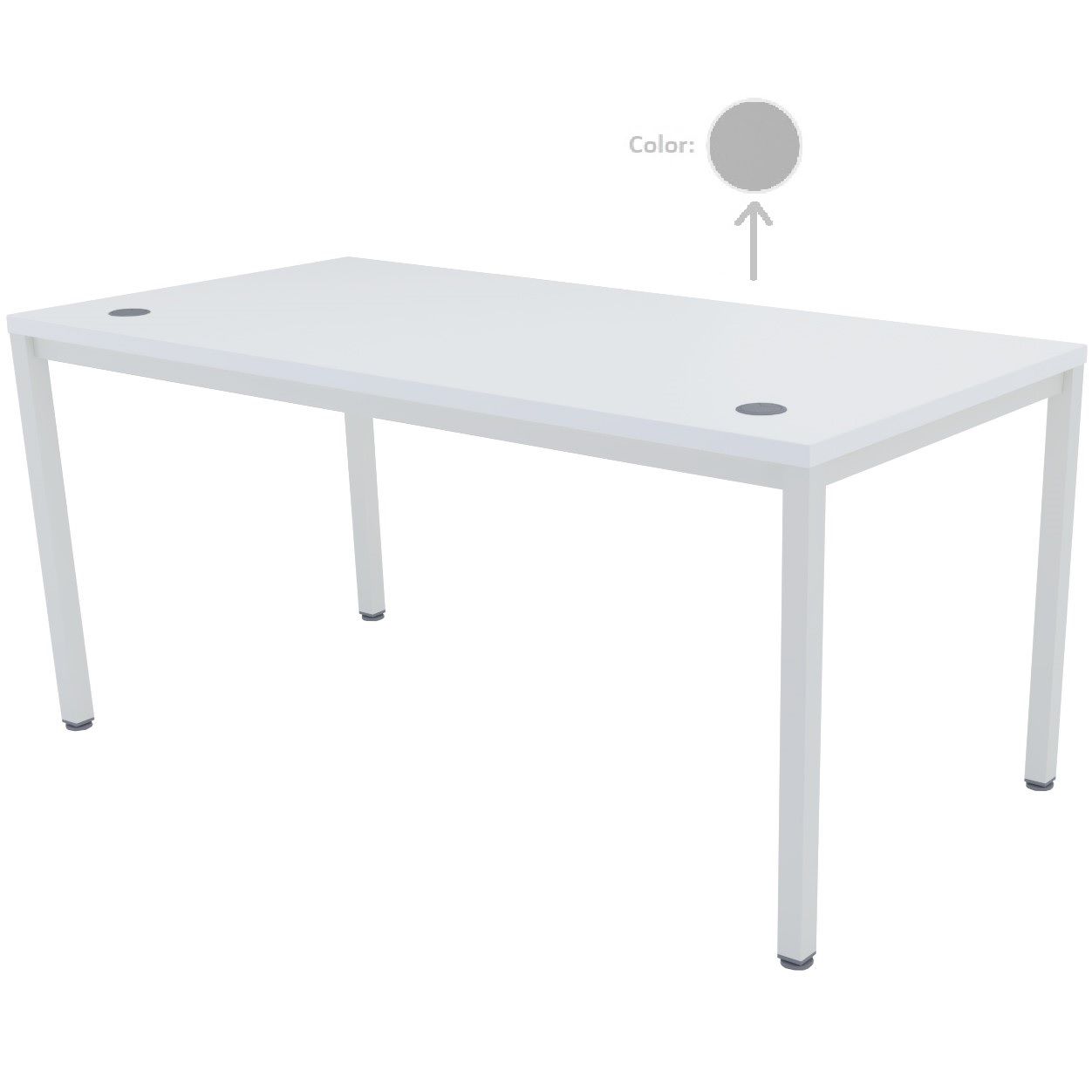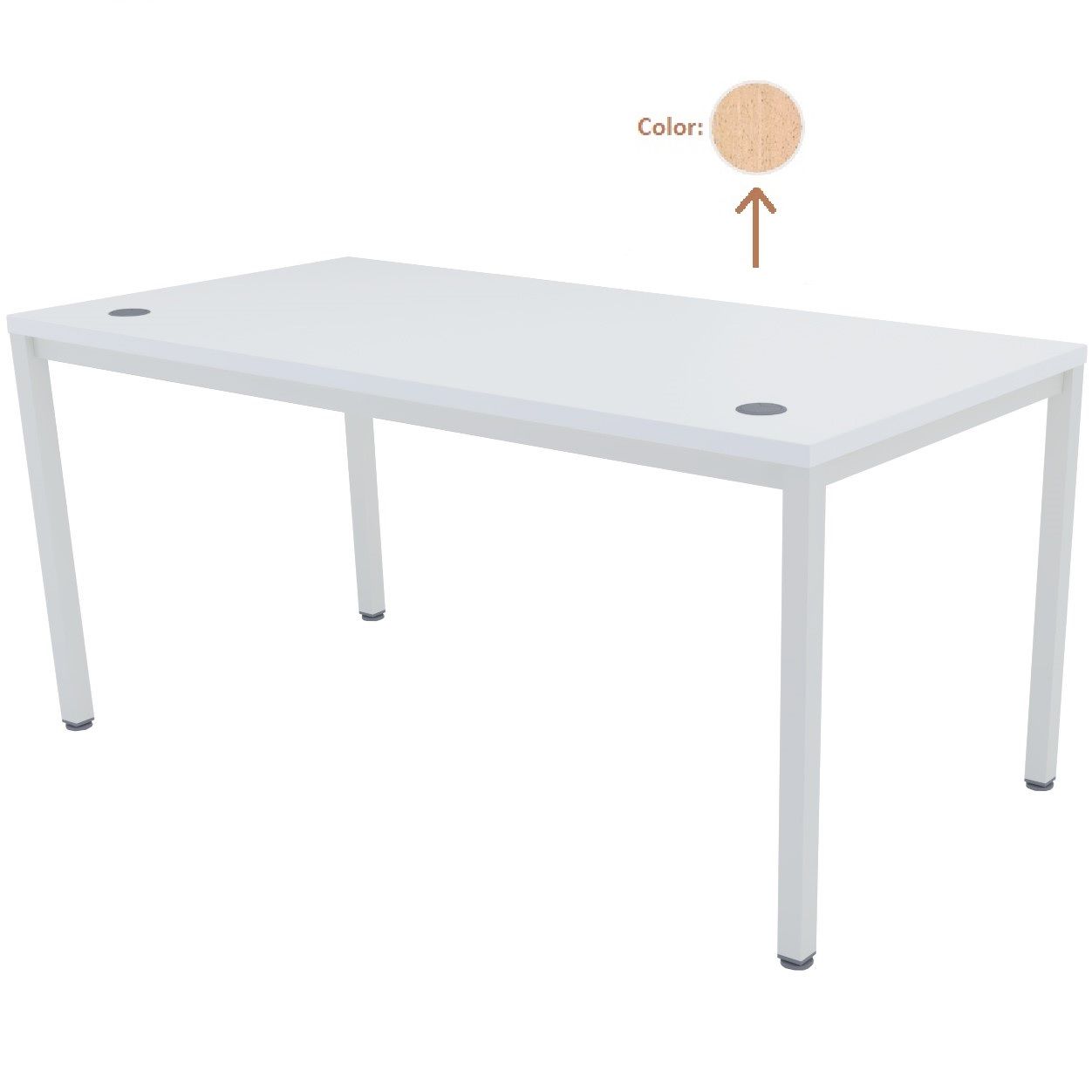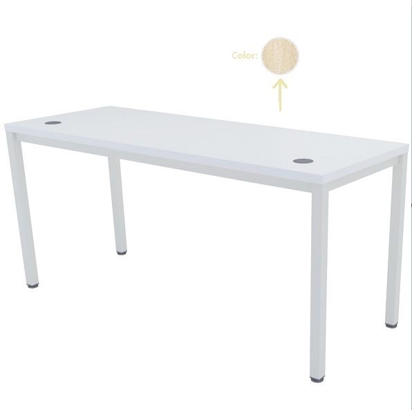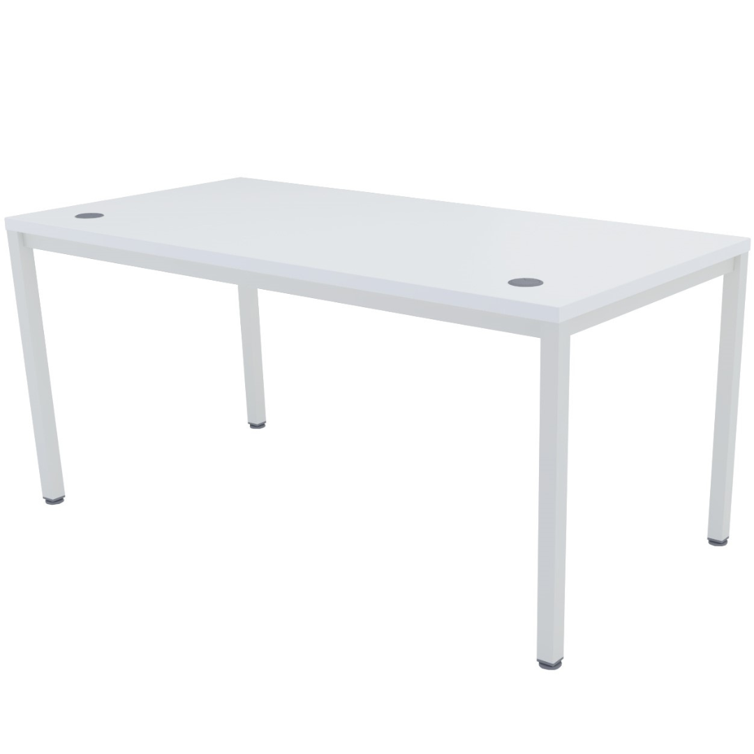 Mesa de trabajo operativa recta EURO 5100 de EUROMOF, nuestra mesa oficina MORCÍN. Fabricada con elementos de sustentación en 4 patas de tubo cuadrado (Color blanco). Encimera superior formada por una tapa de tablero bilaminado de 30 mm de espesor. Tableros cubiertos lateralmente con cantos de PVC de 2 mm. Incluye 2 pasacables. Color a elegir.