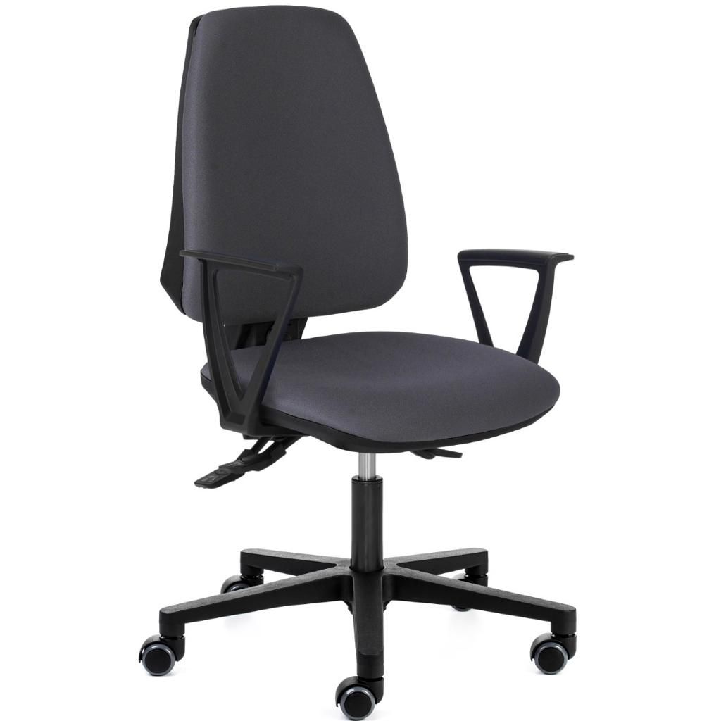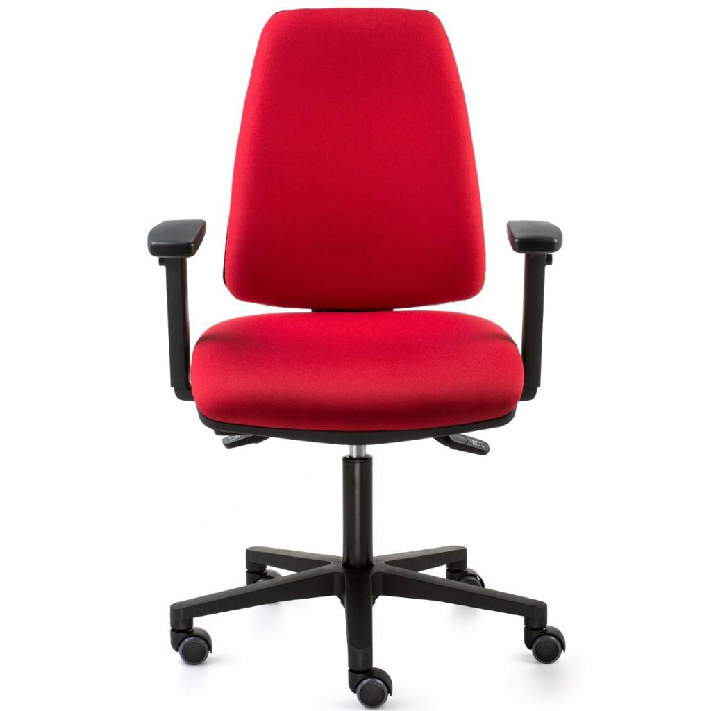 Silla de trabajo operativa ADAPTAPRO de DILEOFFICE, nuestra silla oficina CORIAS. Mecanismo: Sistema de contacto permanente, regulación de presión, respaldo regulable en altura mediante sistema de cremallera, regulación en altura mediante pistón con gas. Asiento y respaldo tapizado. Base giratoria de nylon negro 5 puntas de 64 cm con rodadura blanda. Color a elegir.