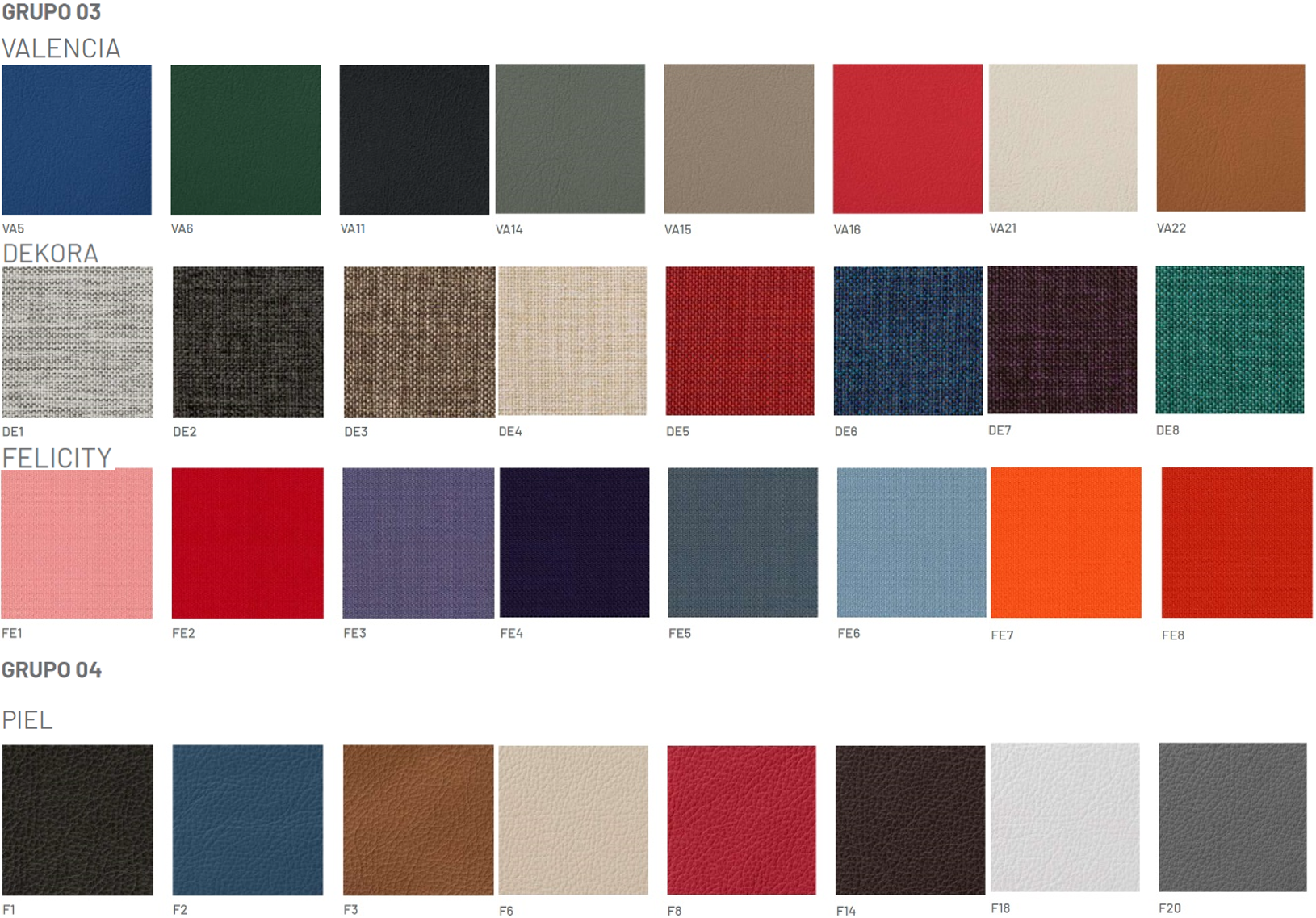 Consultad precio y disponibilidad para tapizados "Grupo 2", "Grupo 3" y "Grupo 4 - Piel":