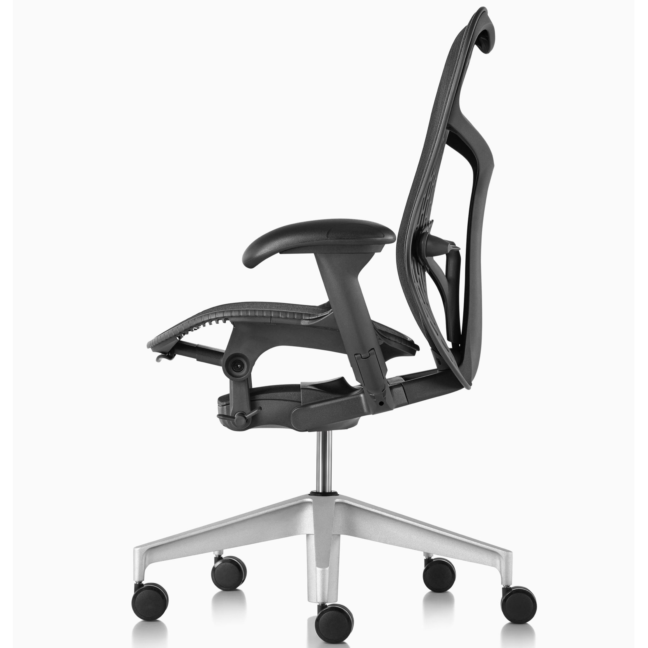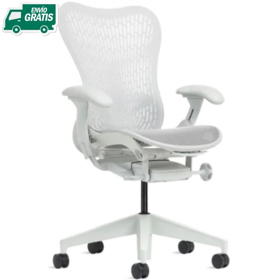 Silla de oficina trabajo ergonómica MIRRA 2 de HERMAN MILLER, grafito. Mecanismo: Sistema sincronizado con limitador de la reclinación e inclinación negativa, regulación en altura mediante pistón con gas (401-528 mm), soporte lumbar ajustable y asiento ajustable en profundidad. Brazos negro, totalmente ajustables. Asiento malla y respaldo Triflex II (polipropileno) o Butterfly. Malla asiento AireWeave 2. Base giratoria estándar de 5 puntas con rodadura 65 mm para todo tipo de suelos (parqué, cerámico, moqueta, alfombra, etc). Color Grafito (en opción polipropileno), Butterfly Negro + Airwave 2 Grafito (en opción + tejido negro), Butterfly Negro + Airwave 2 Grafito y estructura/brazos Alpine, tower Blanco (en opción + tejido grafito), Butterfly Alpine "gris claro" + Airwave 2 Alpine y estructura/brazos Alpine "gris claro" (en opción + tejido blanco), Butterfly Cordovan + Airwave 2 Cordovan y estructura/brazos Alpine (en opción + tejido granate), Butterfly Olive + Airwave 2 Olive y estructura/brazos Alpine (en opción + tejido verde), Butterfly Ochre + Airwave 2 Ochre y estructura/brazos Alpine (en opción + tejido naranja) o Butterfly Ultramarine + Airwave 2 Ultramarine y estructura/brazos Alpine (en opción + tejido azul) .