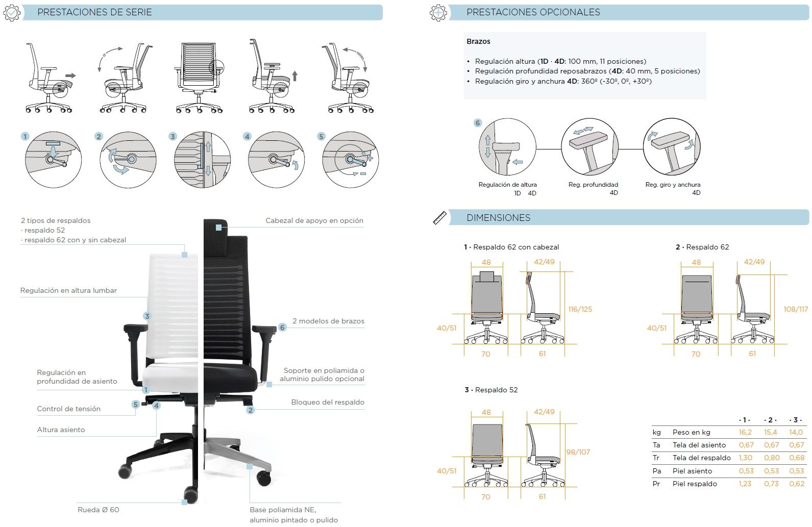 - Respaldo tapizado (estándar en "Colección 60").