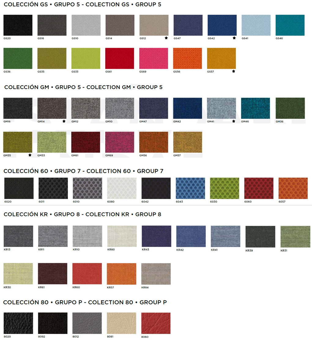 Consultad precio y disponibilidad para tapizados "Grupo 2", "Grupo 3", "Grupo 5", "Grupo 7", "Grupo 8" y "Piel":