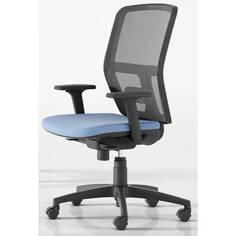 Silla de trabajo ergonómica OKI de SYTA, nuestra silla oficina TAZONES. Mecanismo: Sistema sincronizado de 4 posiciones entre asiento y respaldo con sistema antirretorno, tensor lumbar regulable en altura mediante sistema de cremallera, regulación en altura mediante pistón con gas. Asiento tapizado (color a elegir) y respaldo malla (blanco, gris, rojo, morado, azul o negro). Base giratoria de nylon negro 5 puntas con rodadura blanda.