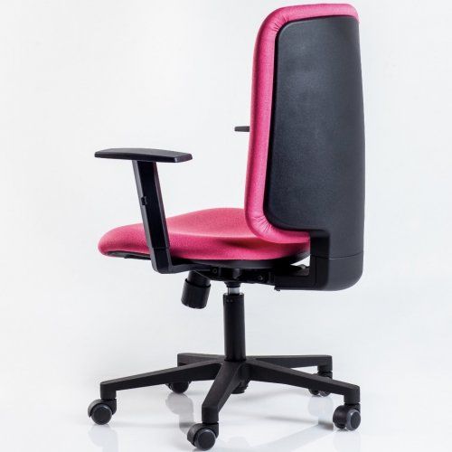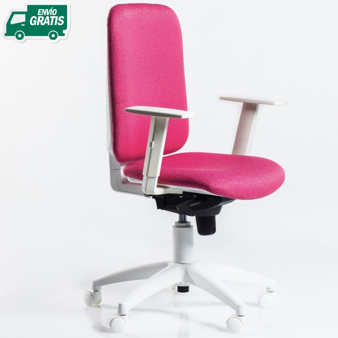 Silla de trabajo ergonómica SOJO de SYTA, nuestra silla oficina TRUBIA. Mecanismo: Sistema sincronizado de 4 posiciones entre asiento y respaldo con sistema antirretorno, respaldo regulable en altura mediante sistema de cremallera, regulación en altura mediante pistón con gas. Asiento y respaldo tapizado (color a elegir). Base giratoria de nylon negro 5 puntas con rodadura blanda (rodadura dura en opción blanco).